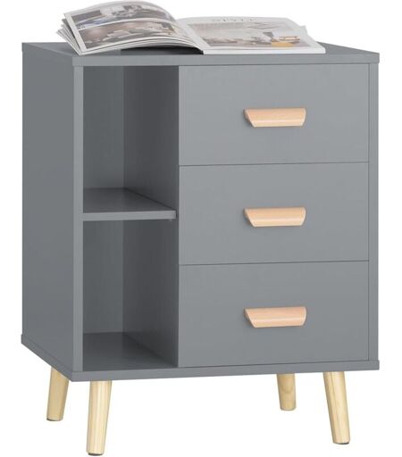 Sobuy - FBT95-HG Table d'Appoint Bout de Canapé Table de Chevet Table de Nuit avec 3 tiroirs et 2 étagères de Rangement - Gris