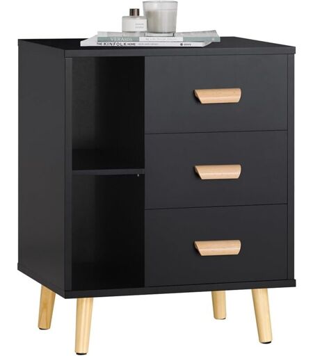 Sobuy - FBT95-SCH Table d'Appoint Bout de Canapé Table de Chevet Table de Nuit avec 3 tiroirs et 2 étagères de Rangement - Noir