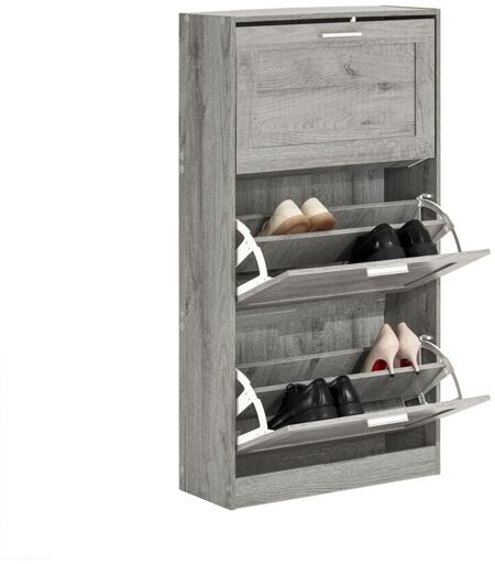 Sobuy - FSR137-L-HG Meuble à Chaussures Armoire à Chaussures Commode à Chaussures Meuble d'entrée, Meuble de Rangement à Chaussures avec 3 Abattants