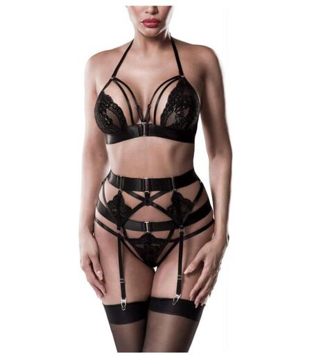 Extrêmement séduisant et raffiné. Je suis votre ensemble 3 pièces dentelle 20059 Devote noir de la marque Grey Velvet. Délicat, grâce à mes tissus doux et à motifs floraux confectionnés en dentelle, je suis également très facile à enfiler grâce à ma matière dense. Mon soutien-gorge est élégant et possède un joli décolleté, relié par des lanières qui apportent une touche séduisante. Le motif du centre de mon string, tenu par des morceaux de tissu en forme de fleurs, est également présent sur mon porte-jarretelles. Cet ensemble doux et raffiné fera sensation auprès de votre partenaire. Composition : 92 % polyamide, 8 % élasthanne. Porte-jarretelles : 75% polyamide, 25% élasthanne Tailles S, M, L, XL, 2XL. ...