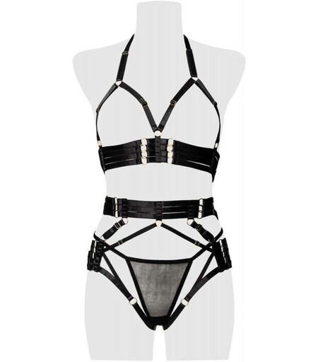 Impressionnant et source de désir. Je suis votre harnais 3 pièces 20060 Dominant noir de la marque Grey Velvet. Conçu en velours, je possède un soutien-gorge ouvert avec des bretelles réglables et des anneaux doux, élégants… et provocants. D’ailleurs orné d’autres anneaux et bretelles réglables avec détails métalliques et fermetures à crochets dans le dos, je suis la définition même du terme « sexy » ! Ajustez-moi à votre corps et à votre désir, je suis là pour ça… Composition : 92 % polyamide, 8 % élasthanne. String : 100% polyuréthane Tailles S, M, L, XL, 2XL. ...