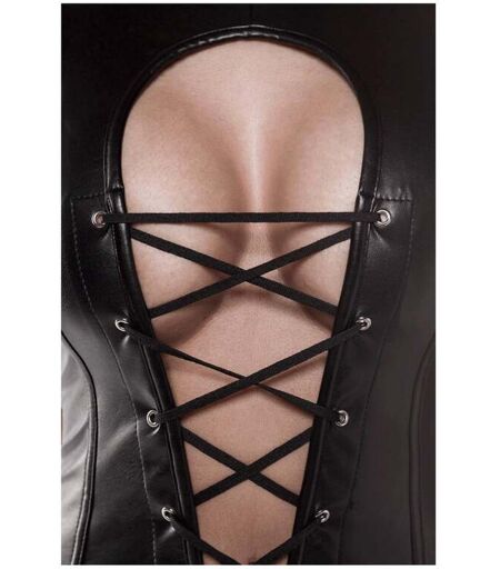 Le démon qui hante votre nuit. Je suis votre robe corset 15320 Dominant noir de la marque Grey Velvet. Fabriquée en similicuir, je suis brillante et imposante. Portez-moi et vous verrez les yeux de votre cher et tendre s’illuminer de désir grâce à mon décolleté profond qui s’étendra jusqu’à votre nombril, ainsi qu’à mes laçages sexy. Laissez mon élégance prendre possession de votre corps grâce à mon design inédit qui ornera votre dos. Composition : 100 % polyuréthane Tailles S, M, L, XL, 2XL. ...