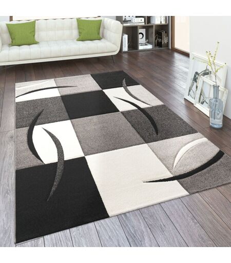 Paco Home - Tapis De Salon En Diff. Coloris Et Tailles Motif Carreaux Rayures Design 3D Poils Ras 160x230 cm, Noir Blanc