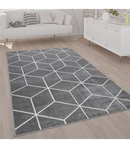 Paco Home Tapis De Salon Poils Ras Style Scandinave Moderne Motif Diamant Gris Blanc 160x220 cm, Gris