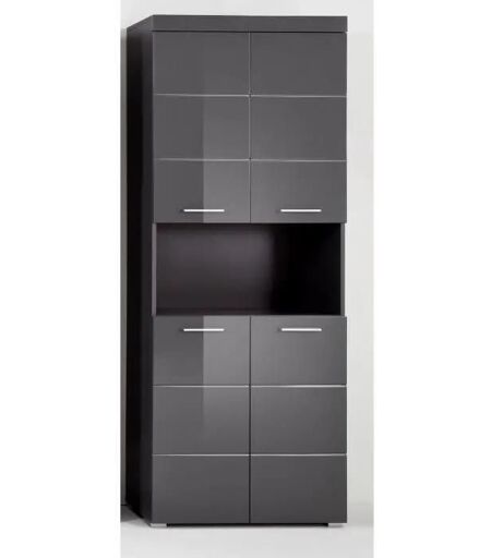 Colonne Salle De Bain - Amanda - 4 Portes - Gris Brillant - L73 X P31 X H190 Cm