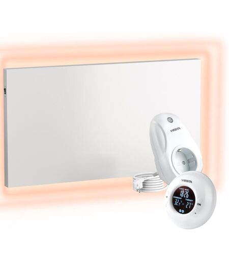 VIESTA Chauffage mural infrarouge avec thermostat [télécommande + contrôle wifi] – Radiateur mural à infrarouge – Panneau infrarouge en cristal de carbone –