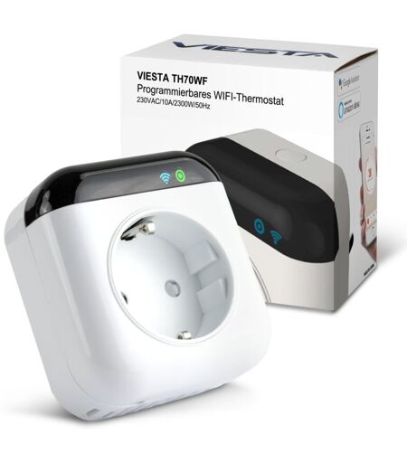 VIESTA TH70 Thermostat Wifi de prise – Un chauffage intelligent et simple ! Avec le Viesta TH70 Wifi , vous contrôlez facilement vos chauffages électriques, panneaux infrarouges, chauffages soufflants ou radiateurs via votre smartphone ou par commande vocale. Branchez-le simplement, connectez votre appareil et pilotez-le grâce à l’application ou avec Alexa/Google Assistant – profitez ainsi à tout moment de la température idéale tout en réalisant des économies d’énergie. ✅ Avantages principaux du produit Contrôle Wifi à distance : utilisation via l’application gratuite Smart Life (iOS/Android) Programmation personnalisée : plannings hebdomadaires avec jusqu’à 4 phases de chauffage/refroidissement par jour Commande vocale : compatible avec Amazon Alexa et Google Assistant Sécurité renforcée : protection intégrée contre les surcharges, prise sécurisée enfant, protection contre la surchauffe Modes flexibles : manuel, chauffage/refroidissement, compte à rebours ou programme hebdomadaire ...