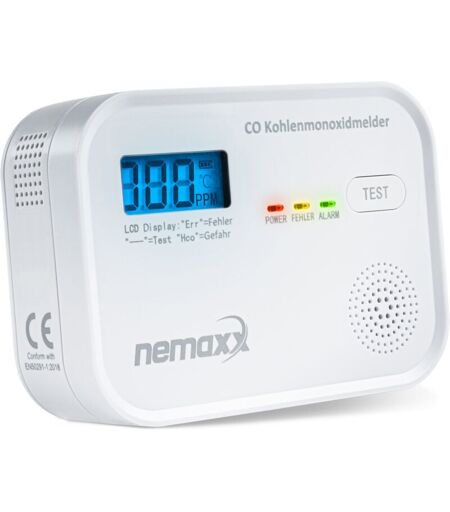 NEMAXX Détecteur de Monoxyde de Carbone avec Alarme Sonore et Visuelle - Détecteur de co pour Maison et Camping-Car/Caravane - Détecteur de Monoxyde de