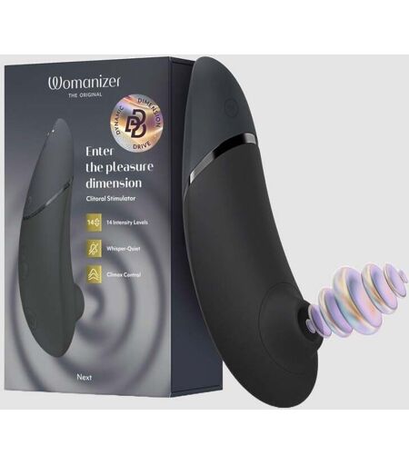 Voici une révolution dans l'univers de la stimulation clitoridienne : le Womanizer Next. Ce bijou de technologie sensuelle va bien au-delà des sensations connues grâce à sa nouvelle 3D Pleasure Air Technology couplée au Dynamic Dimension Drive. Résultat ? Des vagues d'air pulsé qui reproduisent avec finesse la sensation d'une succion naturelle, sans jamais toucher directement la peau. L'effet est immédiat : enveloppant, profond, incroyablement réaliste. Ce qui fait la différence, c'est l'attention portée au confort et à la personnalisation. Grâce à 14 niveaux d'intensité et 3 profondeurs de Climax Control, vous adaptez chaque moment à vos envies, qu'elles soient douces et progressives ou plus intenses et puissantes. Le moteur linéaire embarqué permet un contrôle plus précis de la profondeur, créant une montée en puissance fluide, comme une caresse qui s'adapte à votre rythme. Premium 2 ou Next ? Pensé pour une immersion totale, le Womanizer Next est ultra-silencieux – même à pleine puissance. Vous profitez de vos instants de plaisir en toute discrétion, sans bruits parasites. Son design ergonomique épouse naturellement le corps, tandis que la fonction Smart Silence active la stimulation uniquement au contact de la peau. Et pour les plus curieuses, le mode Autopilot varie les intensités à votre place pour des surprises toujours bienvenues. Fabriqué en silicone ultra-doux, étanche, doté d'une autonomie de 240 minutes, livré avec une tête de rechange, un chargeur magnétique et une pochette de rangement, il a été conçu pour durer… et vous faire vibrer. Womanizer Next, c'est le futur du plaisir — plus vrai que nature. Caractéristiques * 3D Pleasure Air Technology : Stimulation par ondes d'air pulsé sans contact direct pour une sensation douce, naturelle et enveloppante. * Dynamic Dimension Drive : Nouveau moteur linéaire qui ajuste la profondeur de la stimulation pour un plaisir plus réaliste. * Climax Control : Trois niveaux de profondeur pour moduler l'intensité et personnaliser chaque orgasme. * 14 niveaux d'intensité : Réglez la vitesse des pulsations selon vos envies, de la plus douce à la plus intense. * Mode Autopilot : Alterne automatiquement les intensités pour un effet de surprise et une excitation renouvelée. * Smart Silence : S'active uniquement au contact de la peau pour une discrétion maximale. * Fonction Afterglow : Réduction progressive de la stimulation après l'orgasme pour un retour en douceur. * Silicone ultra-doux : Matériau doux, sûr pour le corps et agréable au toucher. * Étanche (IPX7) : Utilisable sous la douche ou dans le bain, facile à nettoyer. * Autonomie de 240 minutes : Longue durée d'utilisation pour des sessions sans interruption. * Recharge magnétique : Pratique et rapide grâce au câble aimanté inclus. * Accessoires inclus : Livré avec une tête de stimulation supplémentaire, une pochette de rangement en coton et un autocollant #IMASTURBATE. * Garantie 5 ans Womanizer. Pour que votre plaisir soit complet, espaceplaisir... ...