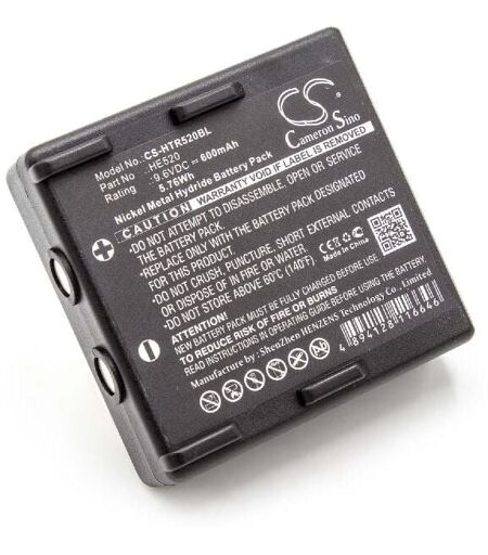 vhbw - the clever way - Batterie de rechange de haute qualité avec une grande autonomie et compatible avec votre telécommande industrielle (vous trouverez ci-dessous tous les modèles correspondants) - La batterie peut être chargée avec le chargeur standard ou un chargeur compatible - Nos batteries répondent à toutes les normes de sécurité actuelles CONTENU DE LIVRAISON : - 1x batterie DONNÉES TECHNIQUES : - Technologie : NiMH - Capacité : 600 mAh - Tension : 9,6 V - Énergie nominale : 5,76 Wh - Couleur : noir - Nombre de cellules : 8 - Poids : 126 g COMPATIBLE AVEC Hetronic FBH900, FBH300, Ergo, Nova Ergo, Nova Pour garantir la compatibilité, veuillez vérifier si votre batterie utilisée actuellement est répertoriée. REMPLACEMENT POUR : - 68300510, 68300520, 68300525, 68300530, HE520, HT-02, KH68300520.A, NM19HB, RHE9608KY, 68300510, 68300520, 68300525, 68300530, HE520, HT-02, KH68300520.A, NM19HB, RHE9608KY, 68300520 vhbw - Accessoires et pièces de rechange de haute qualité pour ...