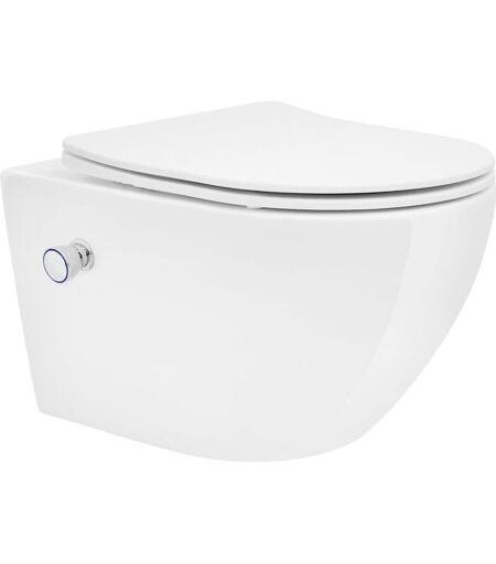 Ecd Germany - wc Suspendu sans Bride de Rinçage, Blanc, en Céramique, avec Fonction Bidet, Abattant à Fermeture Automatique en Plastique