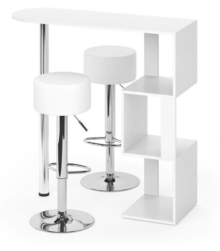 Ensemble de table de bar Vincent, Blanc, 113 x 39.8 cm avec 2 tabourets de bar Vicco