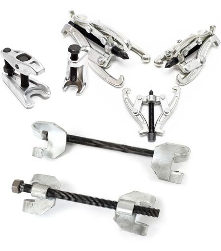 Xpotool - Set 7 pièces de Tendeur de ressort 375 mm avec Extracteurs à griffe & de rotule et Compresseur - Montage automobile Mécanicien Garagiste