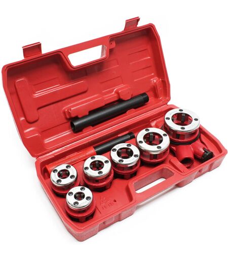 WILTEC Coffret Filières de plombier à Tête interchangeable Taraud Coupe-tube 9 Pièces Outil Plomberie