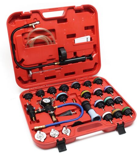 Wiltec - Kit Testeur de pression Système de refroidissement 27 pcs. Bouchon Codage par couleur & Pompe Test