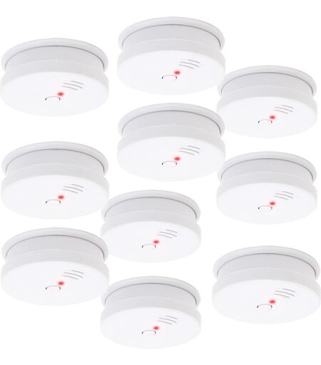 XPOTOOL Wiltec Lot de 10x Détecteur de fumée – 100 x 100 x 36 mm – sur Batterie 9V – Volume de l’alarme 85 dB – Installation sans câble – conforme à DIN EN