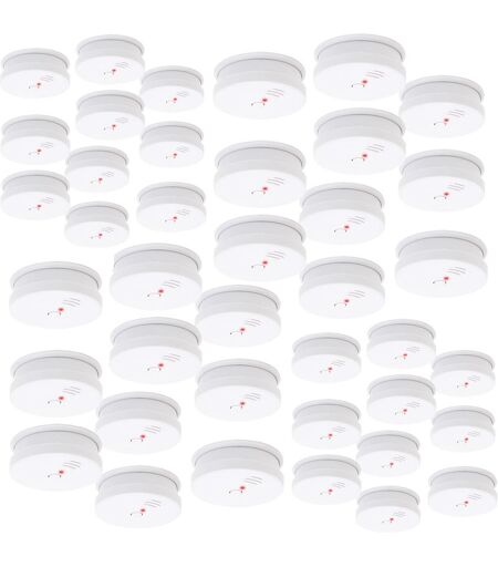 XPOTOOL Wiltec Lot de 40x Détecteur de fumée – 100 x 100 x 36 mm – sur Batterie 9V – Volume de l'alarme 85 dB – Installation sans câble – conforme à din en