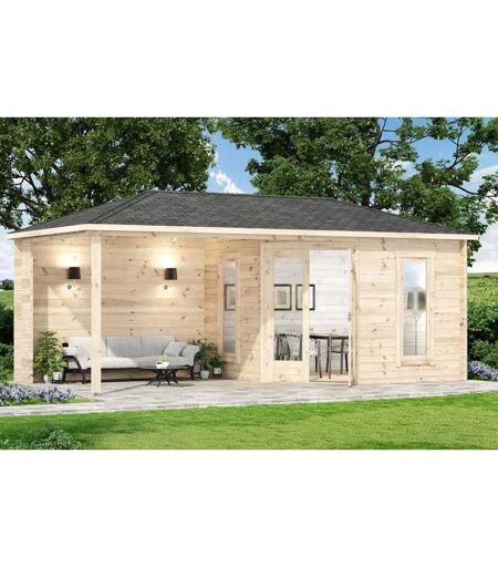 Alpholz - Koop het 5-hoekig Tuinhuis Liwa-28 met overdekt Terras & hoge kwaliteit gelijmd hout dubbele deur +++ Bestel nu bij de specialist Naturel ,