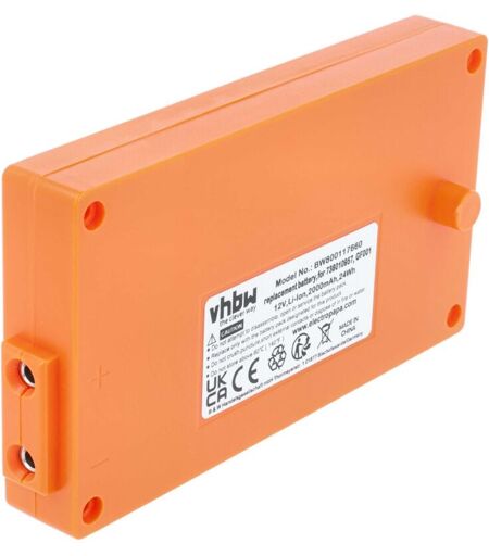 vhbw - the clever way - Batterie de rechange de haute qualité avec une grande autonomie et compatible avec votre telécommande industrielle (vous trouverez ci-dessous tous les modèles correspondants) - La batterie peut être chargée avec le chargeur standard ou un chargeur compatible - Nos batteries répondent à toutes les normes de sécurité actuelles CONTENU DE LIVRAISON : - 1x batterie DONNÉES TECHNIQUES : - Technologie : Li-ion - sans effet mémoire - Capacité : 2000 mAh - Tension : 12 V - Énergie nominale : 24 Wh - Couleur : orange - Nombre de cellules : 10 - Poids : 335 g Pour garantir la compatibilité, veuillez vérifier si votre batterie utilisée actuellement est répertoriée. REMPLACEMENT POUR : - Gross Funk RGRO1215, GF001, 738010957, 100-000-134 vhbw - Accessoires et pièces de rechange de haute qualité pour prolonger la durée de vie de vos appareils électriques. ...
