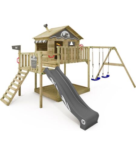 wickey Aire de jeux Portique bois Smart Coast avec balançoire et toboggan Maison enfant sur pilotis avec bac à sable, échelle d'escalade & accessoires de