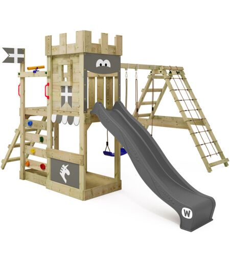 Wickey tour de jeu château-fort DragonFlyer avec balançoire & toboggan maisonnette avec bac à sable échelle de grimpe & accessoires de jeu –
