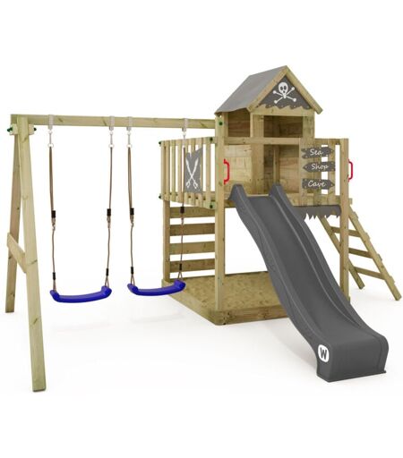 Wickey - tour de jeux en bois Smart Cave avec balançoire et toboggan, cabane avec bac à sable, échelle de corde et accessoires de jeu – anthracite