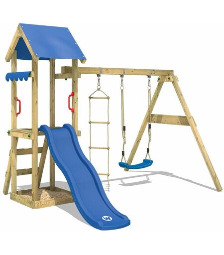 Wickey - Aire de jeux Portique bois TinyCabin avec balançoire et toboggan Maison enfant exterieur avec bac à sable, échelle d'escalade & accessoires