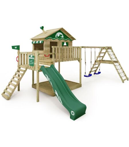 wickey Aire de jeux Portique bois Smart Ocean avec balançoire et toboggan Maison enfant sur pilotis avec bac à sable, échelle d'escalade & accessoires de
