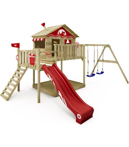 wickey Aire de jeux Portique bois Smart Coast avec balançoire et toboggan Maison enfant sur pilotis avec bac à sable, échelle d'escalade & accessoires de