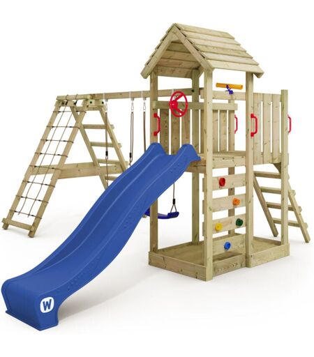 Wickey - Aire de jeux Portique bois RocketFlyer avec balançoire et toboggan Maison enfant exterieur avec bac à sable, échelle d'escalade &