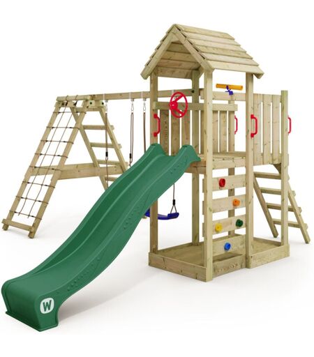 Wickey - Aire de jeux Portique bois RocketFlyer avec balançoire et toboggan Maison enfant exterieur avec bac à sable, échelle d'escalade &