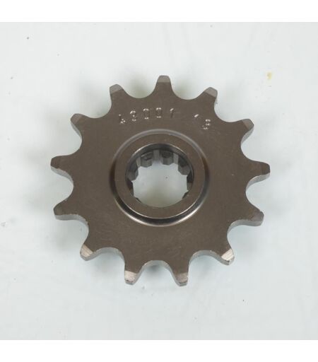 Pignon de sortie de boîte 13 dents en acier neuf de marque Esjot. Caractéristiques: - Nombre de dents: 13 dents - Pas: 420 - Diamètre intérieur cannelure: 14mm - Diamètre extérieur cannelures: 16.8mm - Nombre de cannelures: 10 - Épaisseur au niveau de la chaine: 4.7mm - Épaisseur au niveau des cannelures: 12mm - Déport: Oui - Trou pour le capteur de vitesse: Non Vendu à l'unité. Livré conforme à la photo. ...