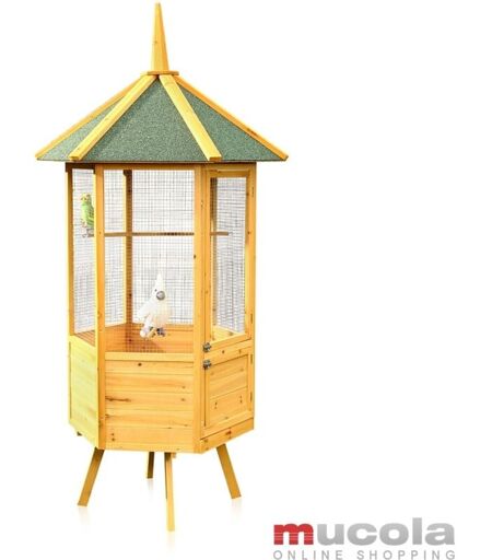 Melko - Volière xxl Cage à oiseaux en bois à 6 coins, 74 x 74 x 194 cm, marron
