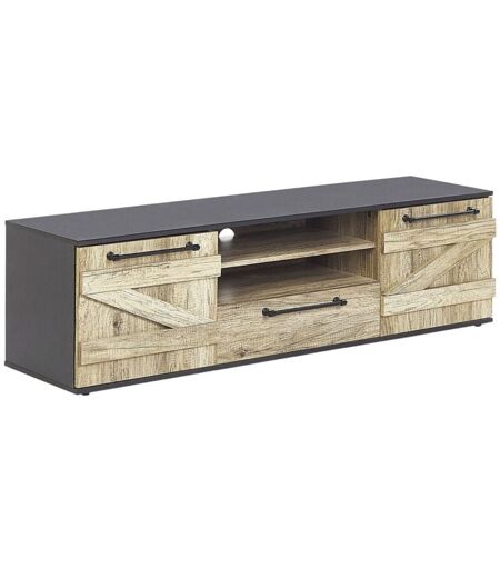 Beliani - Meuble tv Noir et Bois Clair avec 2 Portes et Tiroir Spacieux Solution Rangement Idéale pour Salon ou Chambre au Style Rustique et Campagne