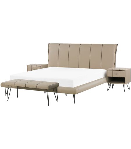 Beliani Ensemble De Chambre En Cuir Pu Beige Avec Lit 180 X 200 Cm Betin