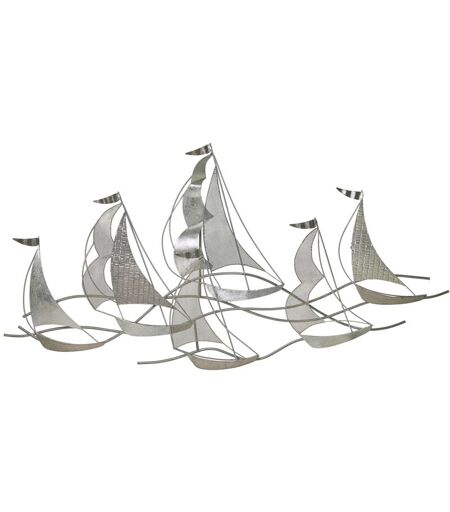 Décoration murale en métal en forme de voiles. Ajoutez une ambiance marine à votre intérieur grâce à cette décoration murale hors du commun. Cette imposante pièce décorative représentant des bateaux argentés aura fière allure autant sur des murs clairs que sombres. Fabriquée à partir d'un métal de haute qualité qui garantit stabilité et longévité, cette décoration marine est magnifique une fois placée au dessus d'une cheminée, d'un placard ou d'un canapé. Détails: Type de produit: Décoration murale Style: Moderne Couleur principale: Argenté, Doré Type de matière: Métal Matière principale: Métal Forme: Difforme Finition: Métalique Orientation: Horizontal Dimensions: Profondeur: 10 cm Largeur: 132 cm Hauteur: 67 cm Poids: 2 kg L`offre inclue: 1 x Décoration murale Caractéristiques clés: Crochets de sécurité en forme arrondis, Style chic, Design moderne, Se marie bien avec tous les styles, Une conception solide et une excellente finition Informations d`assemblage: Ne nécessite pas ...