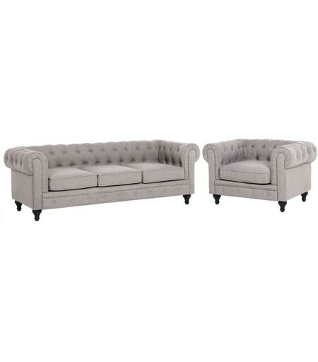 Beliani - Ensemble Canapé et Fauteuil en Tissu Gris Clair Dossier à Points Diamant Chesterfield