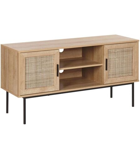 Beliani - Meuble tv Buffet Design Effet Bois Clair avec 2 Portes Cannage en Rotin et Trous Passe Câbles Cabinet Tendance pour Intérieur Rétro et Boho