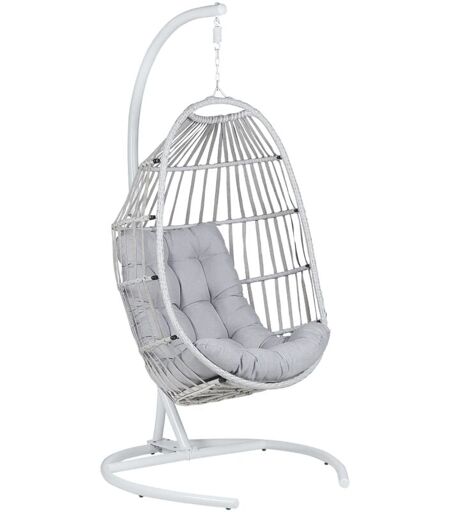 Fauteuil Suspendu Design en Rotin Gris Foncé avec Support et Forme d'Oeuf Idéal pour Salon ou Terrasse au Style Boho et Moderne Beliani
