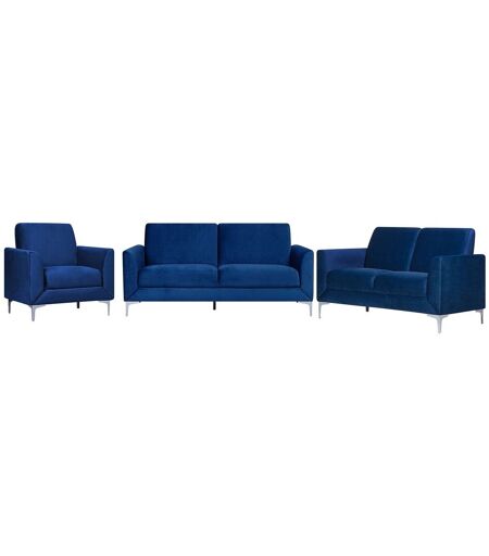 Beliani Ensemble Canapés Et Fauteuil En Velours Bleu Marine 6 Places Fenes