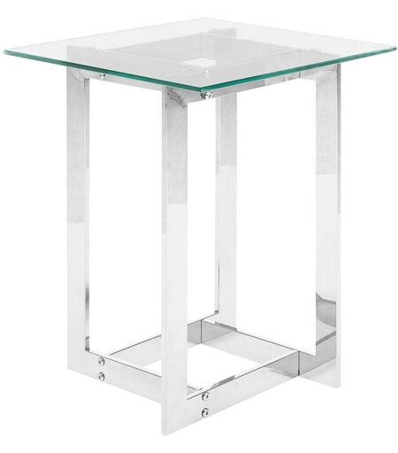 Beliani - Table d'Appoint Plateau Carré en Verre Transparent et Support en Métal Argenté Design Moderne et Chic pour Salon ou Chambre au Style Glamour