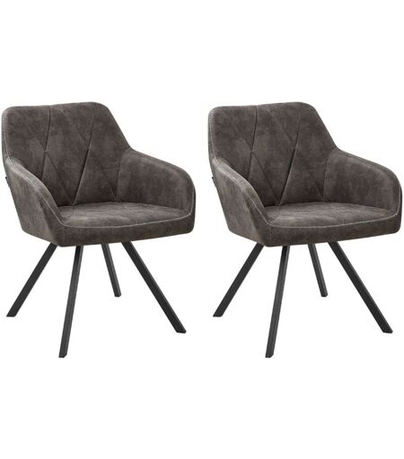 Lot 2 Chaises Rétro en Tissu Gris sur Pieds Noirs en Métal Idéales pour Salon ou Salle à Manger au Style Vintage ou Scandinave Beliani