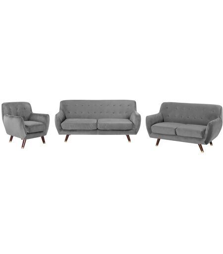 Beliani Ensemble Canapés Et Fauteuil En Velours Gris 6 Places Bodo