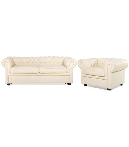 Beliani Ensemble Canapé Et Fauteuil En Cuir Beige Crème 4 Places Chesterfield
