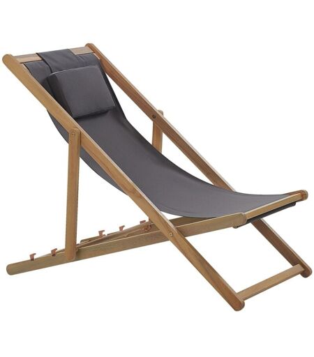 Transat de Plage Chaise Chilienne Pliante en Bois d'Acacia et Textile Gris avec Appui-tête Design Résistant et Léger Intemporel et Moderne Beliani