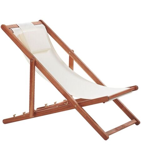 Transat de Plage Chaise Chilienne Pliante en Bois d'Acacia et Textile Beige avec Appui-tête Design Résistant et Léger Intemporel et Moderne Beliani