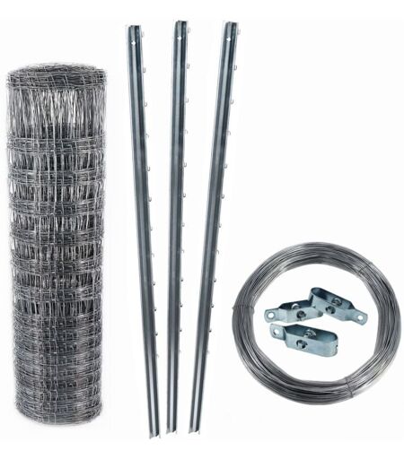 Aquagart - 50 m clôture de protection contre la faune sauvage, clôture forestière, grillage noué 160/15/15+ poteaux + fil de tension