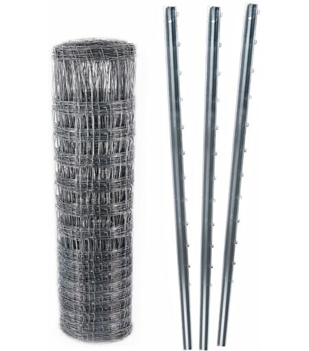 AQUAGART 50 m clôture de protection contre la faune sauvage, clôture forestière, grillage noué 100/10/30 + poteaux de clôture à profil en z