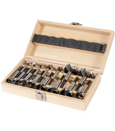 Le jeu de forets à façonner STIER rangés dans un coffret en bois, 15 pièces, est idéal pour un perçage efficace. Caractéristiques : Jeu composé de 15 forets à façonner de 10-50 mm de diamètre. Chaque foret a sa propre place dans le coffret de transport et de rangement en bois très pratique. Avec pointe de centrage précise pour un perçage exact. Foret en acier C45 trempé de haute qualité (1.0503) Diamètre de la tige 10 - 35mm : 8mm Diamètre de la tige 40 - 50mm : 9mm Tige triangulaire / à trois faces Longueur totale des forets : 89,5 - 91,5mm Dimensions de la cassette en bois (longueur x largeur x hauteur) : 277 x 148 x 62mm Application : Convient pour le bois dur et tendre, les panneaux de bois plaqués et le perçage de trous borgnes. Utilisation avec perceuse, perceuse d'établi, perceuse-visseuse sans fil et autres perceuses avec mandrin de serrage. Contenu de la Livraison : 15 x Forets à façonner STIER de diamètres 10 12 14 15 16 20 22 24 25 30 ...