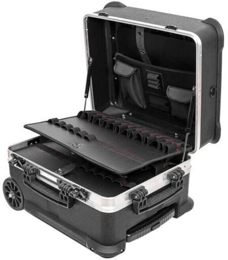 Le chariot à outils STIER Premium avec serrures TSA est un produit de haute qualité qui enrichit chaque artisan Caractéristiques : Le chariot Premium est mobile et empilable Produit de premier choix grâce à une finition de haute qualité et un cadre en aluminium robuste Charnière rivetée et fabriquée à partir d'un matériau HDPE robuste, avec coins renforcés Chaque accessoire trouve sa place grâce aux trois bacs pour petites pièces Valise à outils robuste avec roulettes et roulement à billes résistant Beaucoup d'espace pour les outils à main et électriques; avec grandes roues et ressort à gaz comprimé Produit de haute qualité; Made in Europe La mallette comporte deux compartiments intérieurs et inférieurs; plateau range-documents supplémentaire Avec grandes roues et système d'ouverture à ressorts à gaz comprimé Avec serrures TSA pour une ouverture aisée et sûre par les douanes Beaucoup d'espace de rangement pour outils (électriques); pièces de rechange, documents, ...